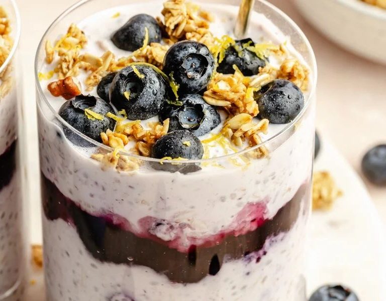 Parfait yến mạch ngâm qua đêm vị việt quất và chanh BC Thời gian chuẩn bị: 20 phút Thời gian nấu: 10 phút Khẩu phần:...